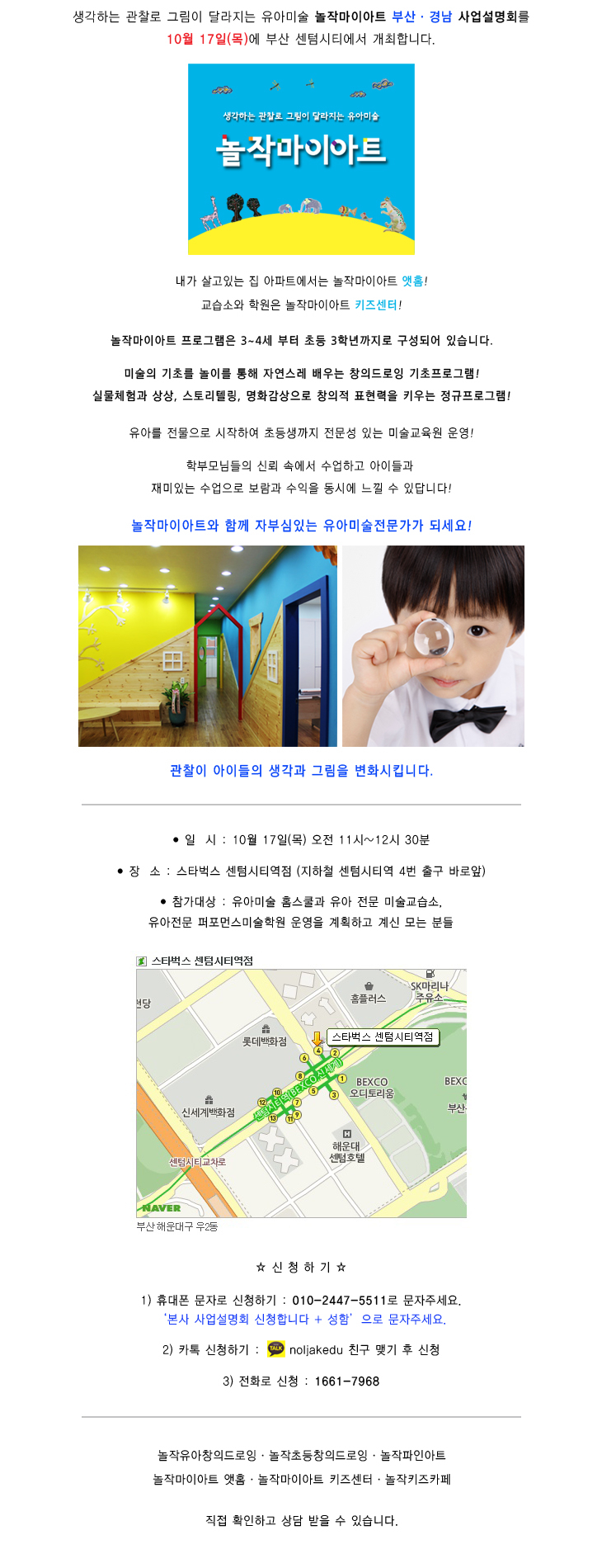 놀작마이아트 부산·경남 사업설명회 10월 17일(목요일)