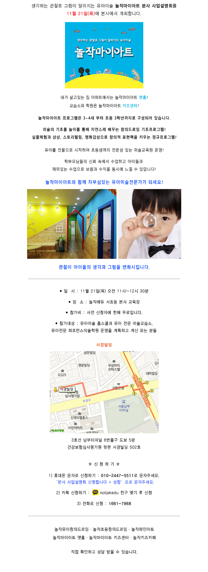 놀작마이아트 본사 사업설명회 11월 21일(목요일)