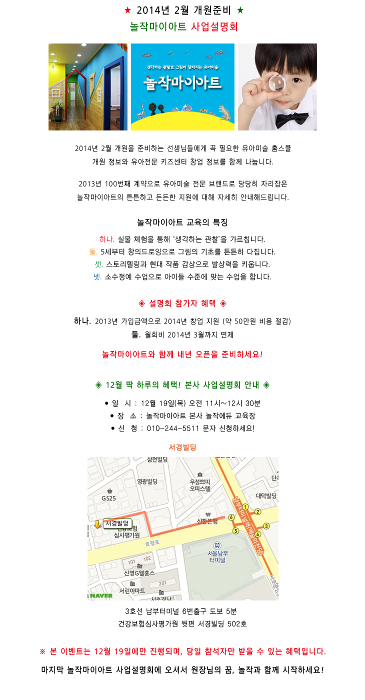놀작마이아트 본사 사업설명회 12월 19일(목요일)