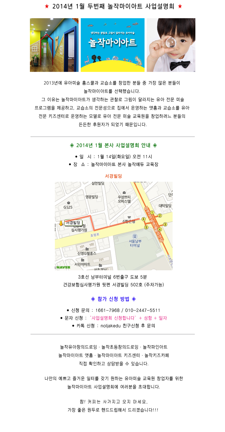 놀작마이아트 본사 사업설명회 1월 14일(화요일)