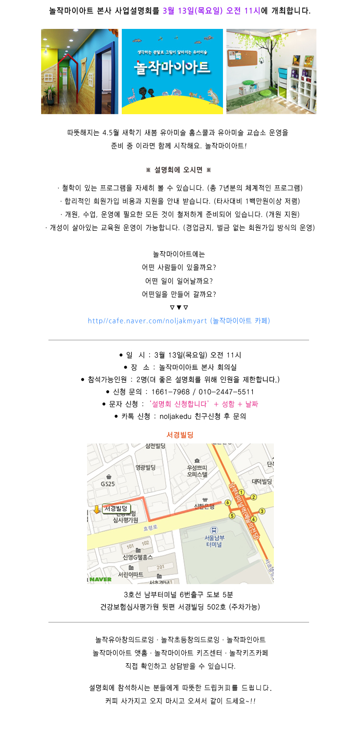 놀작마이아트 본사 사업설명회 3월 13일(목요일)