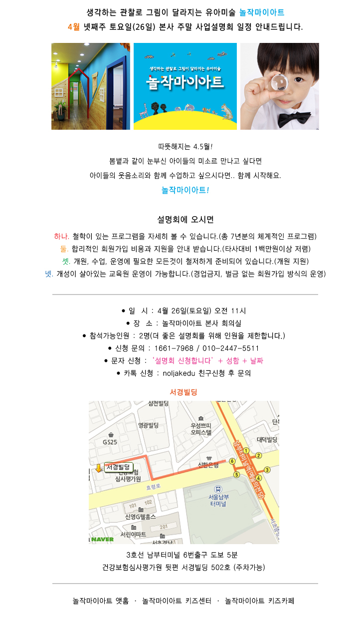 놀작마이아트 본사 주말 사업설명회 4월 26일(토요일)