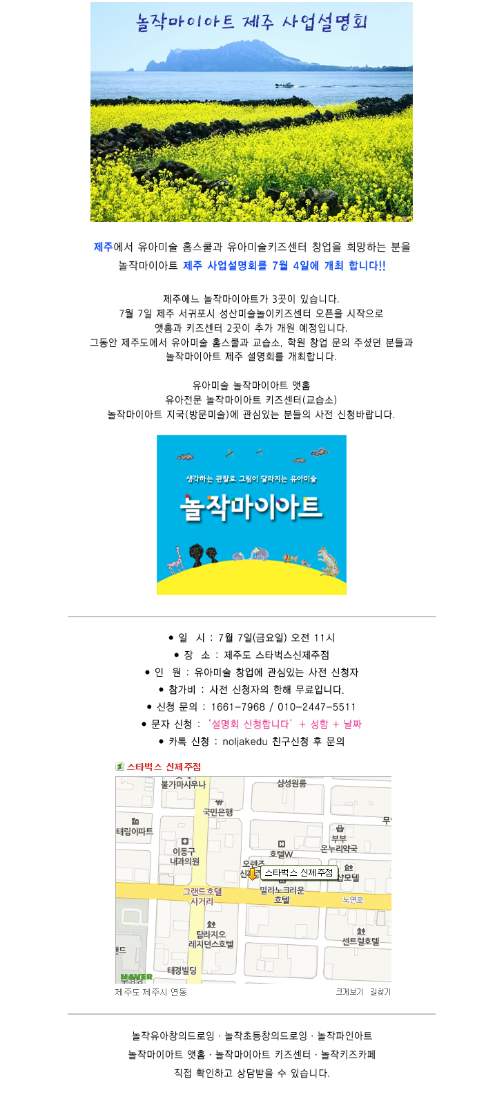 7월 4일(금요일) 놀작마이아트 제주도 사업설명회