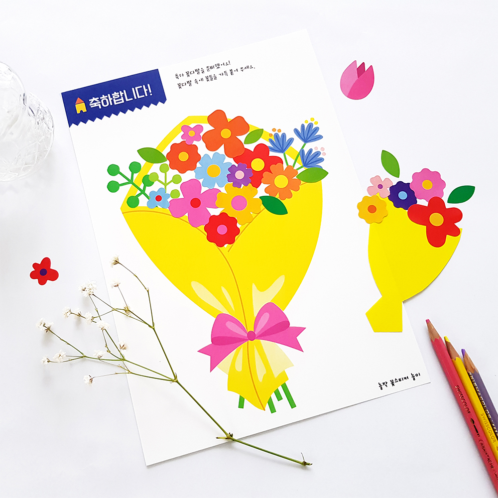 It is an art box designed with a single theme drawn from the daily lives of children, featuring 12 art activities related to that theme. The boxes are curated with specific themes like Hangul, autumn, and watermelon, as well as differentiated by materials like paper cups and wooden sticks. Engaging in the artistic process not only refines fine motor skills but also fosters creativity, culminating in a profound sense of joy and accomplishment.